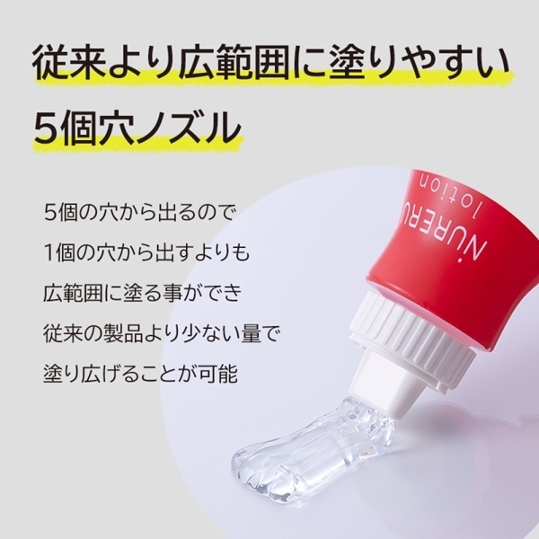 ●化粧品販売届出済●5つの穴から出るので広範囲に塗りやすい。●柔らかい容器なので液が出しやすい。●液が硬いので好みの硬さにカスタマイズでき、持続性がある。●ヒアルロン酸配合