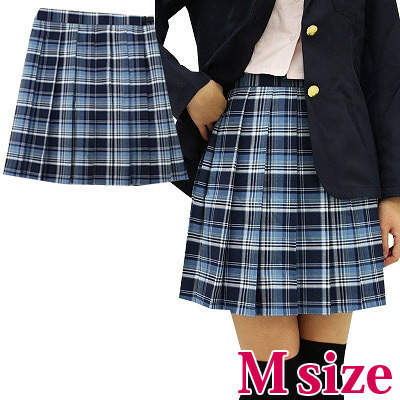 チェック柄プリーツスカート M ブルーチェック