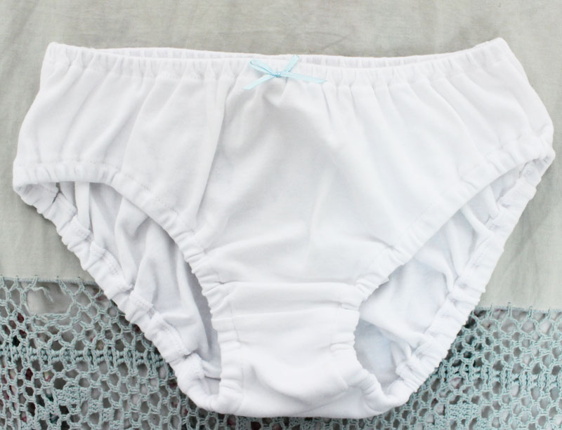 Mサイズ:H87〜100cm 内容:パンツ(フロント上部に水色リボン付き、マチ当て付き(白色綿))