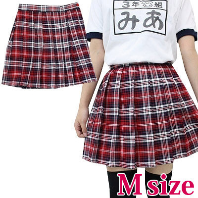 チェック柄プリーツスカート M レッド・ホワイト