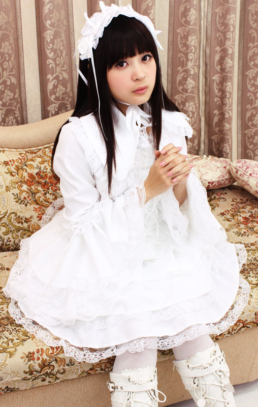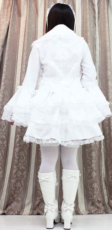 たっぷりのフリフリレースでボリューム感を持たせた、真っ白なチュールメイド服(M)。ボリューミーなフリル使いがゴージャス!大きめの衿は取り外しが可能。キュートなヘッドドレスもセットになった、ゴスロリ系コスプレ衣装です。※水洗い不可、塩素系漂白剤による漂白不可、アイロンは中温で当て布使用、ドライクリーニング可、色落ちの可能性があります。※こちらの商品は在庫の状況によりお届けまでに4日〜7日程度かかる場合がございます。
