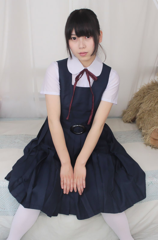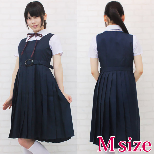 長めのスカート丈で清楚な印象!ジャンパースカートタイプの制服コスプレ(M)。半袖シャツは可愛らしい丸襟仕様!シンプルなリボンと布製ベルトもポイントです!紺色ワンピースは、肩ボタンとサイドのボタンで着脱可能です。※水洗い不可、塩素系漂白剤による漂白不可、アイロンは中温で当て布使用、ドライクリーニング可、色落ちの可能性があります。※こちらの商品は在庫の状況によりお届けまでに4日〜7日程度かかる場合がございます。