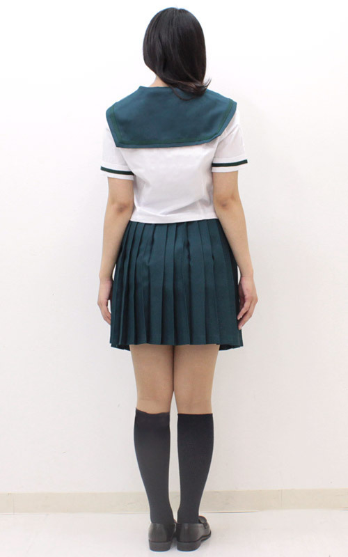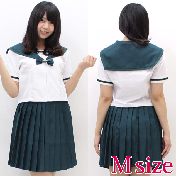 お嬢様学校として有名な学校の夏服セーラー服(M)がついに登場!ちょっぴり珍しい深緑カラーでキュートに仕上げた制服コスプレです。袖や胸元に入ったラインやリボン、プリーツスカートのどれもが本物そっくり!これを着れば、憧れていたお嬢様学校の一員にアナタもなれますよ。※水洗い不可、塩素系漂白剤による漂白不可、アイロンは中温で当て布使用、ドライクリーニング可、色落ちの可能性があります、ご注意ください。※こちらの商品は在庫の状況によりお届けまでに4日〜7日程度かかる場合がございます。
