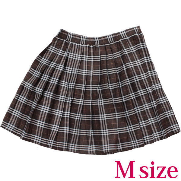 チェック柄プリーツスカート単品 ブラウン M ブラウン