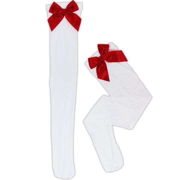 > リボン付きニーハイ 白×赤リボン