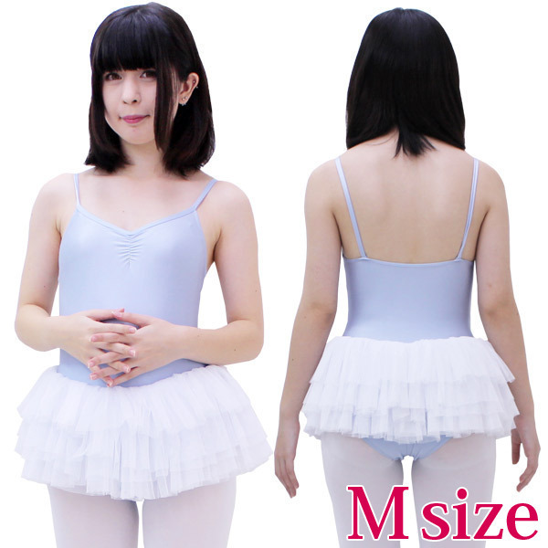 チュールスカート付きキャミソールレオタード 水色×白 M 水色×白