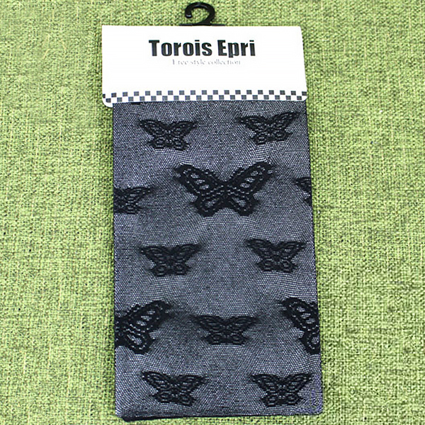【在庫限り!大特価】嬉しいプチプラ価格♪透け感が涼しげなTrois Epri(トロアエプリ)の蝶柄ハイソックス。●セクシーなバタフライ柄ソックス●透け感のあるシースルーブラック●フリーサイズ。脚元をセクシーに飾るひざ下丈の蝶柄ハイソックス。コスプレ衣装はもちろん普段使いにもOKです。※ぬるま湯(30度)で優しく手洗いしてください、塩素系漂白剤による漂白不可、色落ちの可能性がありますのでご注意ください。