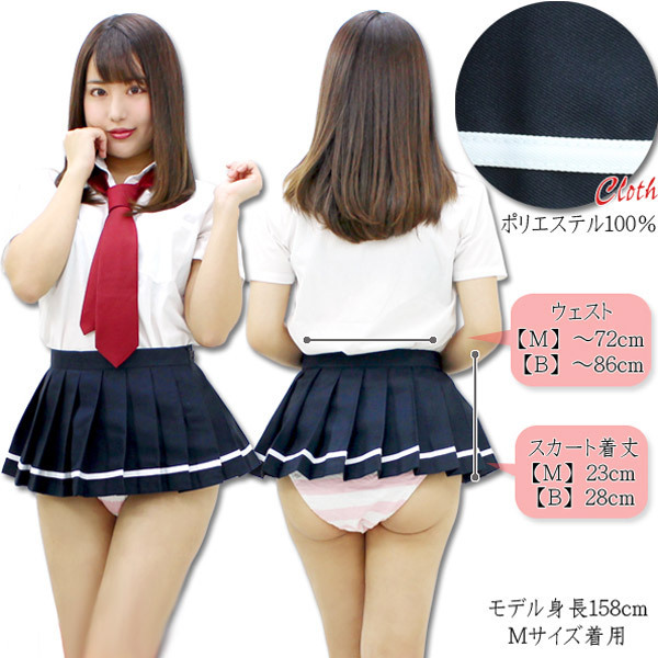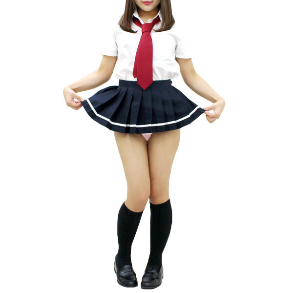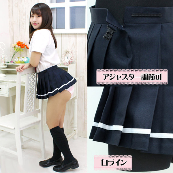 HOME > コスプレ衣装 > 小道具(ニーソックス・猫耳) > 超ミニ無地プリーツスカート単品 紺×白ライン BIG
