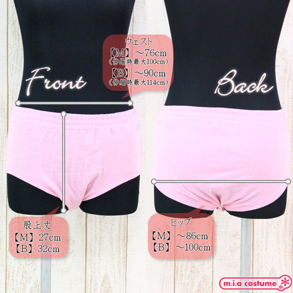 Mサイズ W〜76cm(伸縮時最大100cm)・H〜86cm ブルマ:股上丈27cm セット内容:ブルマ単品 素材:ポリエステル65%、コットン35%