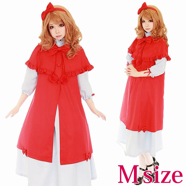 ロリータ風のデザインが可愛い!ロングワンピでお淑やかに仕上げた上品スタイルの赤ずきんコスプレ。レースやリボンを施した長めの真っ赤なマントやボンボン付のリボンがとってもキュート♪可愛いハロウィン仮装をお探しの方はぜひどうぞ!カチューシャ付き※塩素系漂白剤による漂白不可、洗濯の際はリボンなどの付属品を外し個々単独での手洗いをお願いします、色落ちの可能性があります。※こちらの商品は在庫の状況によりお届けまでに4日〜7日程度かかる場合がございます。