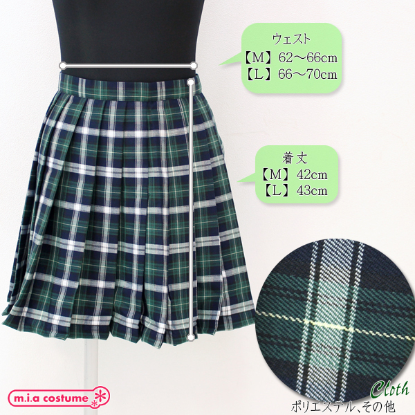 HOME > コスプレ衣装 > 小道具(ニーソックス・猫耳) > ポケット付きのチェック柄プリーツスカート単品 緑×白 Mサイズ