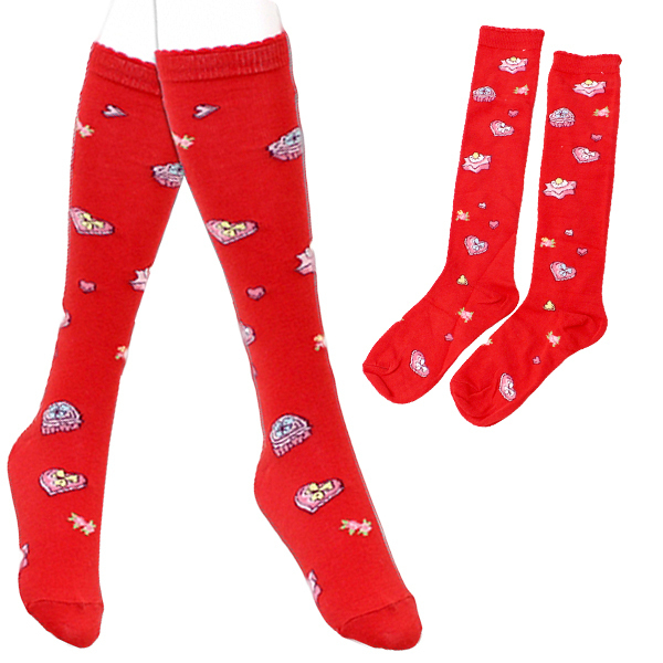 HOME > コスプレ衣装 > 小道具(ニーソックス・猫耳) > クッキー柄ロリータハイソックス単品 赤