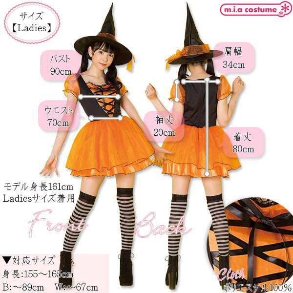 ハロウィーンの夜は魔女になりきり変身!オレンジ×黒の定番ハロウィンカラーで可愛く仕上げたキュートな魔女コスプレ。パフ袖やスカートに透明感のあるオーガンジー素材を使用しお洒落にデザイン!別途パニエを合わせれば、よりふんわり感アップ♪可愛いウィッチガールになれちゃいます。スカートのみ裏地付、背面ファスナー仕様◎Fサイズ※洗濯不可、塩素系漂白剤による漂白不可、アイロン不可、ドライクリーニング不可※こちらの商品は在庫の状況によりお届けまでに4日〜7日程度かかる場合がございます。