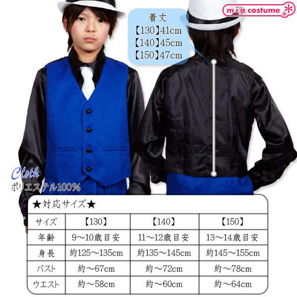 140サイズ 対応サイズ:身長135〜145cm・B〜72cm・W〜60cm 実寸:着丈45cm セット内容:ベスト単品(前ボタン) 素材:ポリエステル100%