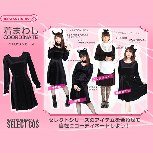 HOME > コスプレ衣装 > 小道具(ニーソックス・猫耳) > セレクトコス ベロアワンピース ブラック
