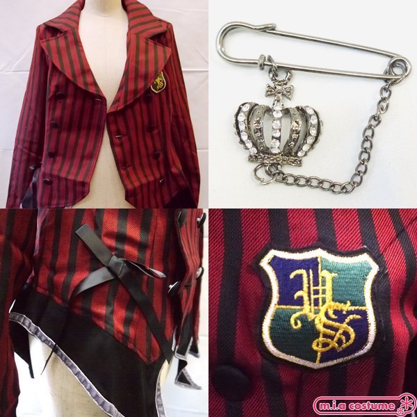 Mサイズ:B90cm・W76cm・肩幅37cm・袖丈58cm・着丈48〜77cm セット内容:ワッペン付きジャケット(前ボタン)、ブローチ 素材:ポリエステル、その他