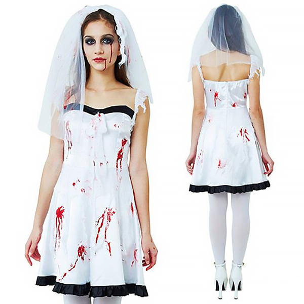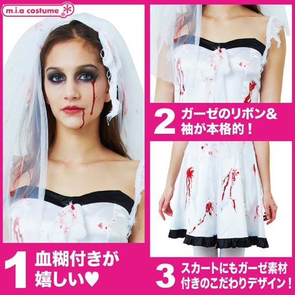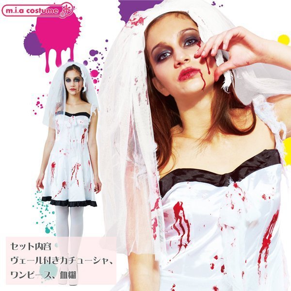 スプラッターブライド 血糊花嫁ウェディングドレス フリーサイズ ホワイト×ブラック