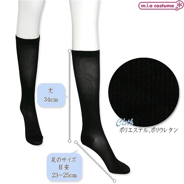 サイズ:足のサイズ目安23〜25cm・履き口〜かかと長さ34cm セット内容:ハイソックス単品 素材:ポリエステル、ポリウレタン