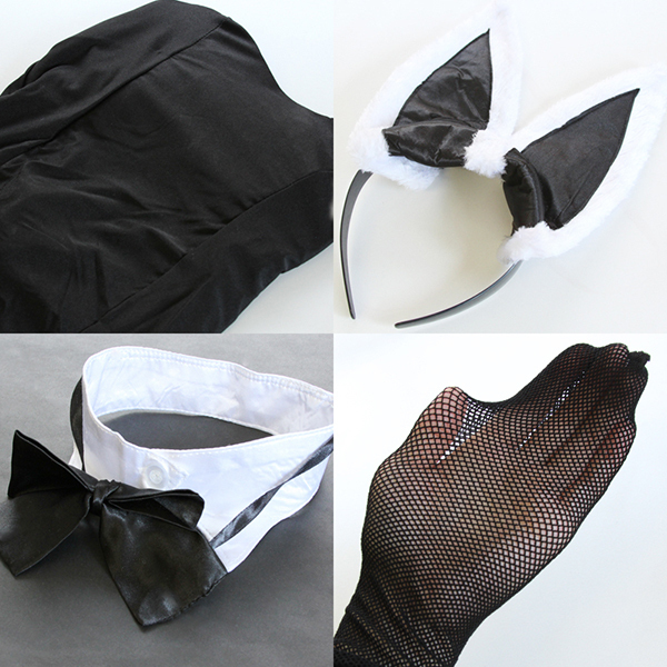 仮装パーティーやイベントでも大活躍!セクシーコスプレ衣装の王道、定番モノトーンカラーのバニーガールコスチューム。尻尾が可愛いレオタードは透明ストラップ付き!レオタード、蝶ネクタイ付き襟、カフス、網タイツ、カチューシャがセットになったバニーガール衣装です。※サイズはおおよその目安となります、表記のサイズを基準に前後でお考え下さい。