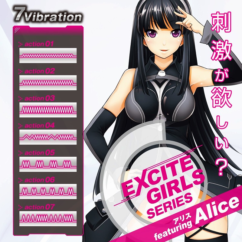「いつもの刺激じゃ物足りない」という方にオススメ!エキサイトガールズシリーズのバイブ。パッケージモデル「Alice」の滑らかな曲線を描いた、高級シリコン素材のブラックカラーボディが挿入をサポート!使い方は至って簡単!底に付いたスイッチを押す度に振動が切り替わり、長押しで電源をOFF!7種類の振動を搭載しているので、アナタが一番感じる振動を探しながらお楽しみ頂けます。膣内に刺激をたっぷり与えてくれるバイブレーターです。単4電池×2本使用。