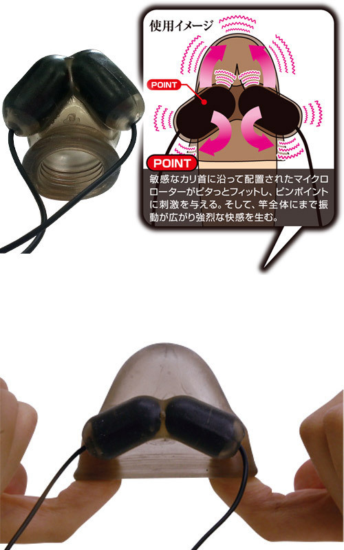 今度のブラックロックは、カリ首特化型でコンドームのようにカリ裏に装着できます!スロオナ用としてもOKで、亀頭裏筋にジャストフィットするため、コンドームと併用すると後処理がかなり楽なので、サッと抜くときにもお使い頂けます。有線リモコンのダイヤル無段階操作により、自分好みの快感をゲット!ブラックロックKRはコンドームとの併用もお勧めです。カリを鍛えるためにも是非どうぞ。