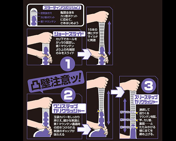 快感中毒者、続出!大ヒットを遂げた、伸縮で楽しむスライドホールの新作オナホール。●匂いがしない丈夫な柔らか素材●ローションは微量でOK●コンパクトに収納可能●36本の横ヒダが全体をまんべんなく刺激●高低差6mmのカリクラッシャーマウンテンを4つ配置●刺激構造がカリ首を潰すかの如くゴロゴロと大胆に刺激。玉袋カバーをしっかり押さえて一気にスライドすると、すぐさま昇天!最後の一滴まで残さず絞り出す、シリーズ最高刺激のホールです。