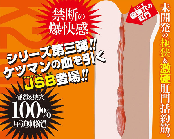 未開発のアナルに強引に挿入したい!そんな声に応えて生まれた、快感MAXの極上アナルホール。●シリーズ第三弾・JSB(ジャパニーズセックスボーイ)●硬質な素材を採用●伸縮性&耐久性バツグンの肉厚ボディ●極狭な挿入口&激硬な肛門括約筋を再現●複雑なヒダ&イボ構造。竿を圧迫するような挿入感はアソコとは比べものにならないほど!三代目の名に恥じない、引き締まったケツマンの刺激と快感を体験できるアナルホールです。