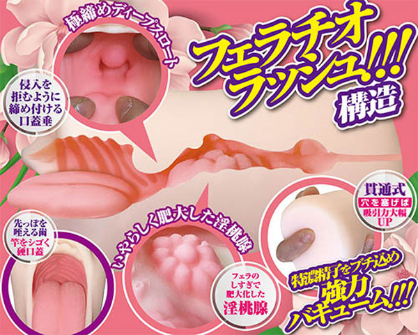 濃厚な舌使いとバキューム地獄で一網打尽!淫乱ベロ長女のクチま○こフェラオナホール「強吸引 長舌フェラペチーノ」。●口元をリアルに再現したフェラ系●根元までや優しく包むモチ肌素材●内部でベロベロうねる65mmの長い舌●超強力なバキュームフェラを実現●喉奥まで続くギミックラッシュ構造●甘噛み歯と硬めヒダの上顎も成型●いやらしく肥大した扁桃腺風イボ●極締め喉ちんこでディープスロート●メンテ性抜群!洗いやすい貫通式●底部の穴を塞げば吸引力が大幅UP。リアル造形のフェラチオホールで強力バキュームのじゅるじゅるプレイをお楽しみ下さい。