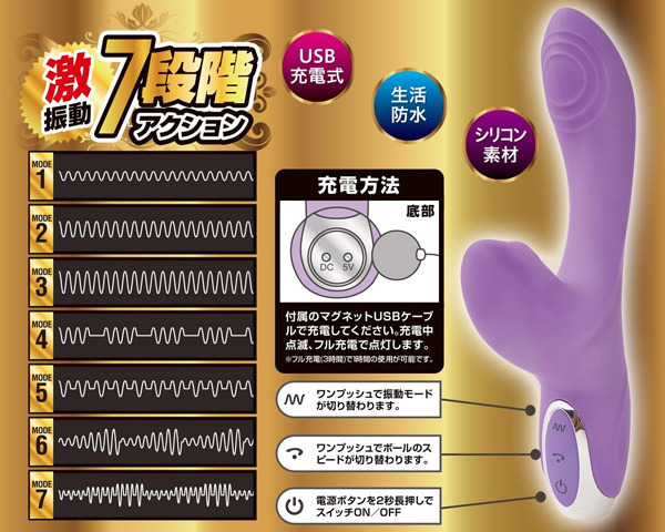 激振動とムービングボールの極上ダブル刺激!クリちゃん悶絶の新快感バイブ「クリアタック」。3段階スピード調整が可能なクリバイブにムービングボールを内蔵し、まるでクリトリスを指先でいじられているような快感に。本体部分は7段階ファンクションの激振動がGスポットを狙い撃ちするフィット形状!さらに膣全体にその振動が行き渡ります。付属のマグネットUSBケーブルでワンタッチ充電ができるUSB充電式!約3時間のフル充電で約1時間の使用が可能です(使用状況、環境により時間が変化する場合がございます)。