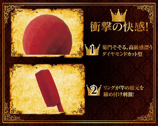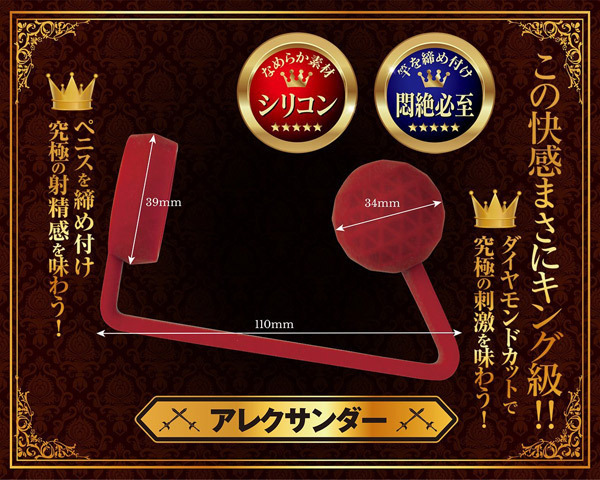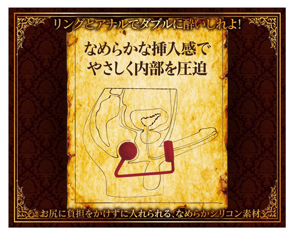 キングの称号が相応しい、最高峰のアナルプラグが登場しました!こちらはコックリングとアナルによるダブルの刺激が楽しめる逸品で、挿入部分の最大系は約3センチの球形、もう片方はペニス部分に装着できる幅広のリングが付いていて玉とリングが繋がっているのが特徴です。素材はお尻に負担をかけない滑らかなシリコン素材で出来ていて、リングでペニスを締め付けながら同時にボールで内部を圧迫することで究極の射精感を味わえます!ダイヤモンドカットされた直径34mmのボールによる圧迫刺激は悶絶必至。パートナーとのプレイにもぜひお試しください!