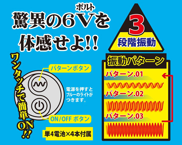 簡単な操作でパワフルな快感!6ボルトの振動を手軽に楽しめるシンプルなシングルローターです。振動にスポットを当てたシンプル構造のシングルローターで、振動パターンは強弱3パターンを内蔵!ボタンもワンタッチの簡単操作でシンプルに楽しめるピンクカラーのローターとなっております♪