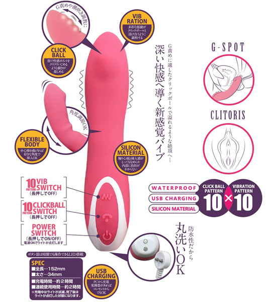オナニー好きの女の子と一緒に作った新感覚バイブ『アピチェ』。先端に搭載されたクリックボールがあなたを深い快感へ導く。カラダの芯から気持ちよくなろう。先端のクリックボールが深い快感へ導くバイブ『アピチェ』指で性感ポイントをクリクリいじめる動きが楽しめる。10種の多彩な振動パターンが、クリックボールと調和する。中心部を曲げれば好きな角度で刺激可能。触り心地と挿入感がとってもなめらかで内部に負担がかからない。生活防水、シリコン製。2時間の充電で約2時間の連続使用可能※使用状況や環境により時間が変わる場合があります。