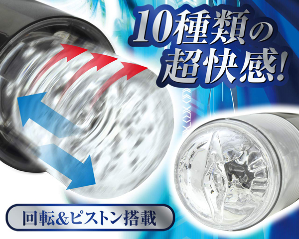 超高速回転&超絶ピストン!!ピストントルネードが、電動オナホールに旋風を巻き起こす!!挿入してボタンを押せば、回転&ピストンスタート。うねるようなトルネード回転が、亀頭や竿を刺激。10種類の超快感に、キミは耐えることができるか?ホールは取り外して丸洗いOK。ライトボタンを押せば本体内部が光り、ムードを演出。驚愕の快感を堪能せよ!!