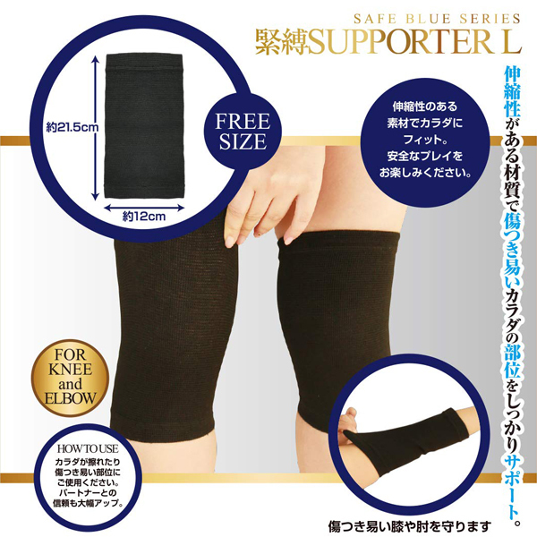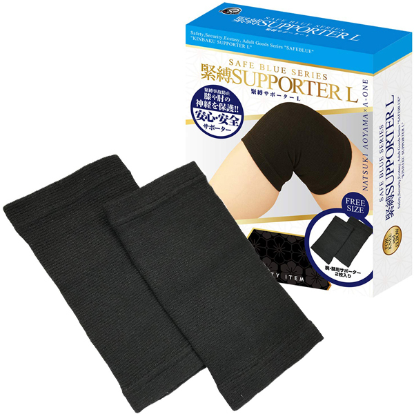 安心・安全で気持ちよくをコンセプトに、青山夏樹がグッズをプロデュース!『セーフブルー シリーズ』緊縛による神経圧迫事故防止のために考案されたサポーターです。伸縮性がある材質で手首や足首の神経を保護!!擦れたり傷つきやすい部位をしっかりサポート。パートナーとの信頼度もアップし、安全なプレイをお楽しみ頂けます。圧迫による麻痺が起こりやすい上腕部・脇下・肘関節・手首関節・指関節・膝関節・足関節などは、筋肉が薄く構造上弱いため、緊縛の際は注意が必要です。体と縄の間にサポーターを一枚着けるだけで圧迫事故などが防げます。そのような緊縛プレイに最適な厚み、材質の商品になっております。Lサイズ
