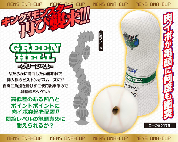 ヤバイほどの射精感!キングオブモンスター再び襲来!キングオブモンスター再び襲来!手に馴染む「モンスターグリップ」を採用。ストロークの際の自身への負担を軽減し射精感は抜群!ホールをカップから取り外して洗浄可能なので繰り返し使えます。肉イボが亀頭に何度も衝突しながら刺激を与える!!※内部形状は着色が施されております。