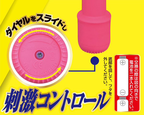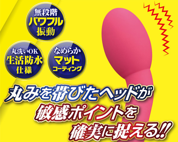 Gスポ集中責めで大量潮吹きまでまっしぐら!圧迫しながら強烈振動する電池式バイブ。滑らかなマット加工で挿入スムーズ!幅3.5cmの丸い先端で敏感ポイントを的確に捉え、徹底的に刺激します。生活防水仕様で丸洗い可能!振動は初心者でも簡単なスライド式無段階調整◎単三電池を2本使用、ピンク