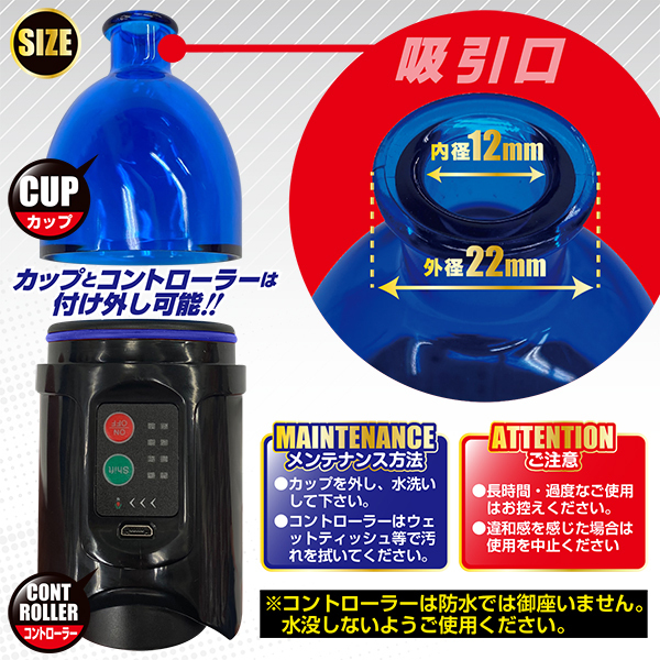 次元を超えた驚異の吸引力!真空ジェット吸引で超ひっぱりながら鬼吸いされてイキまくる♪男女兼用でクリや乳首を徹底的に吸引する「バキューマナイザー」が新登場!使い方はとても簡単で、吸引レベルを調節しながら本体を押し込んだりグリグリするだけ♪悶え苦しむほどの吸引力でセルフでの吸引はもちろん、パートナーとのプレイと楽しみ方は無限大!カップは取り外し簡単でメンテナンスもラクチン。吸引グッズの新たな歴史は此処から始まる♪バキューマナイザーでガンガン吸い込みグリグリ嬲れよう!電源はUSB充電式でフル充電120分で連続稼働が90分と電池スタミナも抜群♪4段階の吸引レベルでクリでも乳首でも楽しませてくれます。