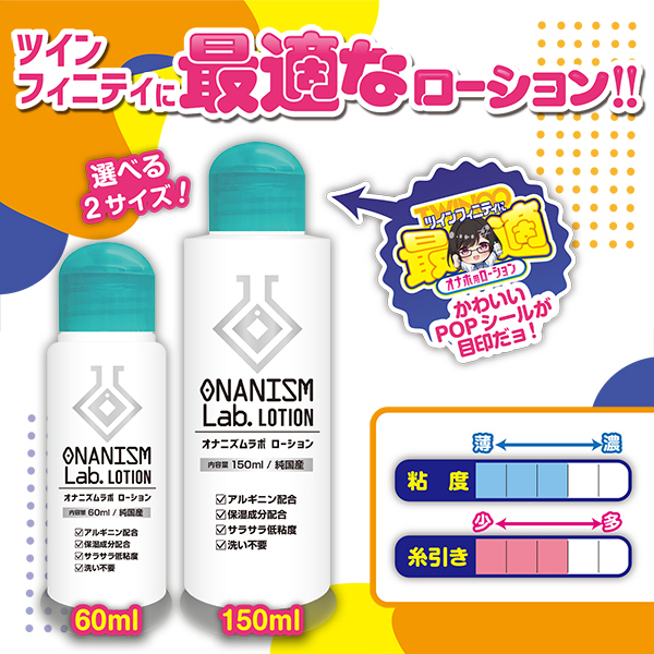 人気のオナホシリーズ『ツインフィニティシリーズ』に最適なオナホ用ローションが遂に出た!!オナホに最適な粘度感で、内部でよく馴染む。アルギニン配合で、ベストな状態をキープしながらガチガチシコシコ♪サッとひと拭き洗い不要で楽チンチン。純国産だから安心安全に使えちゃう。もちろん、ツインフィニティ以外のオナホに使っても楽しめる!ひとつ上のオナニー体験がさらに加速する…オナニズムラボローションで新しい快感を手に入れよう♪150mlタイプはたっぷり使えるノーマルサイズ