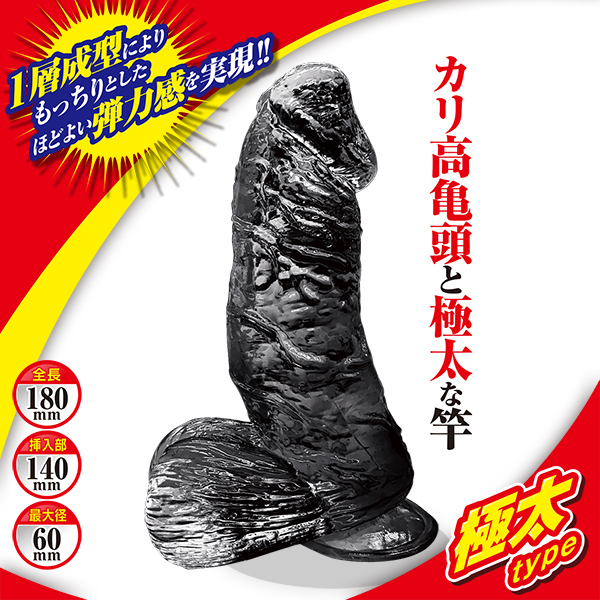 個性派揃いッ!かっこいいブラックスケルトンボディで、三者三様の良さがある!3人そろって弾力ちんちんまん!1層成型により、もっちりとした、ほどよい弾力感を実現!!プレイにも集中できる強力吸盤付き!!ぜひ3人とも味わうことをオススメいたします!!<極太type>カリ高亀頭と極太な竿竿が内部をパンパンに圧迫!身も心も満たされる、カリ高亀頭と極太竿。