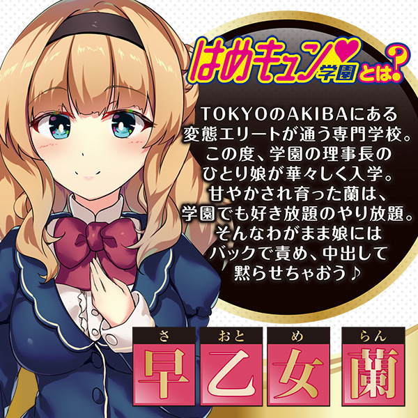 性春日本代表♪アニメ系エアドールシリーズ「はめキュン学園」に、学園理事長のひとり娘『ラン』が華々しく入学!!甘やかされて育った『ラン』は、学園でも好き放題のやり放題。そんなわがまま娘にはバックで責め、中出して黙らせちゃおう♪お好きなコスチュームや下着を付ければ妄想度さらにアップ!!オナホールとローションがセットになっているから、買ったらすぐに使える。発売中のヒマリ・メイ・レイカ・アヤカ・イチカ・ルナを揃えれば、学園ハーレムプレイも♪毎日がちょっぴり刺激的になっちゃうはめキュン学園で、性春をマンキツしよう♪<illustration>wingheart。