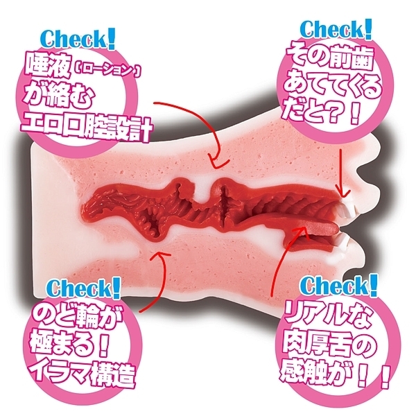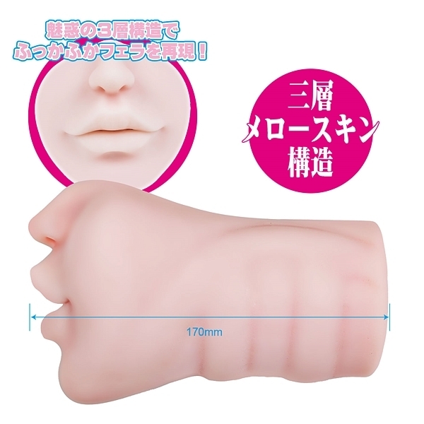 「すっごいおフェラシテあげる!」腰ガクのおフェラ特化ホールの登場です。より柔らかさと弾力性を追求したメロースキンを使用し、なんと三層構造に成功しました。三層にすることで、よりもっちりした口腔内部構造、ほどよい弾力とボリュームをもたせた本体内部構造、肌のハリを感じられる外部構造となっています。口腔内部は唾液(ローション)がより絡む設計になっており、ホール内部のピンはのど輪が極まりやすいイラマ構造を採用しています。リアルな歯(ソフト)と舌(ねっとり)を感じ取れるまさに口技の一閃がここに。600gオーバーのボリュームとともにお楽しみください。