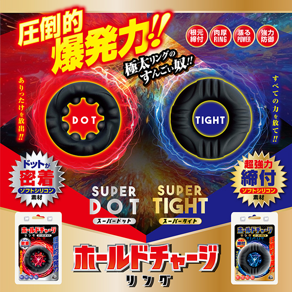 リングを装着しエネルギーチャージ。圧倒的爆発力で、すべての力を放て!攻守ともに優れたソフトシリコンリング。タマやサオ、その両方をガッチリホールドし、最後の一撃に込めるべし!<商品特徴>極太リングでしっかりHOLD!!はんぱない装着感!