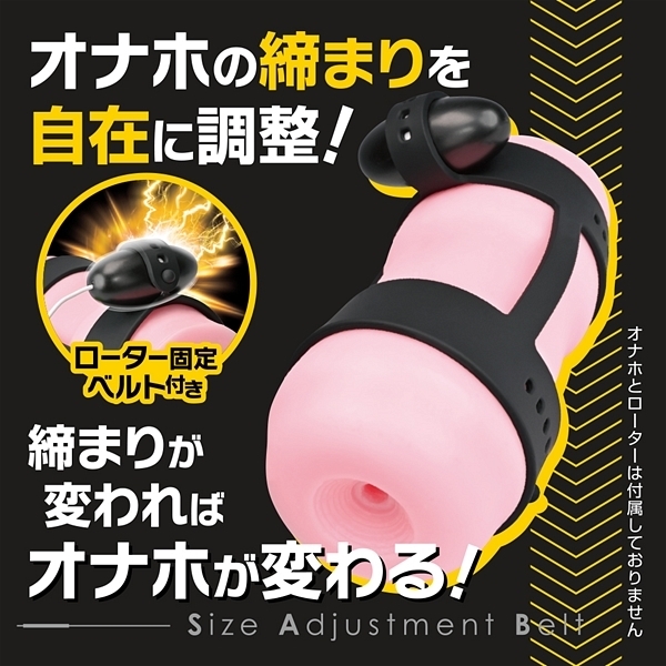 オナホに装着して2箇所の締まり具合を自在に調節圧迫出来る伸縮性シリコンベルト。11個のベルト穴で様々なサイズのオナホ・締め方に対応出来ます。挿入口側のみキツくしたり、奥側を締め付けたり、好みに合わせて楽しめる。さらにローターを固定出来るローターベルトも搭載しているので振動刺激もプラス出来る。締まりが変わればオナホが変わる!オナホール用オプションアイテム。