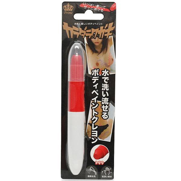肌に優しいラクガキクレヨン<カラダラクガキ>に便利な単品パッケージが新しく登場しました。プレイを盛り上げるラクガキが自在に楽しめて、水で簡単に洗い流せます。肌に相性抜群のレッド。