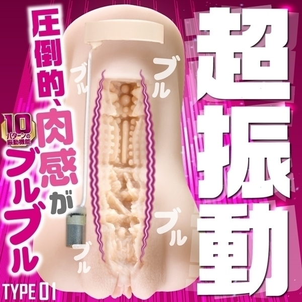 圧倒的肉感と強力ローターのブルブル超振動!多彩な振動パターン搭載のローター内蔵ホール。900gオーバーの肉感にローターを内蔵した大型ホール。TYPE01は腰回りの肉付きが特盛!無次元ヒダの入口から様々なタイプのイボへと繋がる内部構造は、ローターの振動との相性を重視したメリハリ構造!10パターンの振動で快感をググっと高めます。ローターはUSBケーブルでの充電式。接続部分はマグネット式なので洗浄の際も安心です。見た目も内部構造も振動もすべてに抜かりなしの新感覚ホールです。