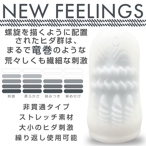 コンパクトでも実用的で繰り返し使えるミニホール。縦横へ走るヒダが竜巻に飲まれるような刺激を生む。コンパクトで持ち歩きに便利なミニホール。TORNADOは入口から最奥まで伸びる螺旋ヒダの間に、横に走るヒダが設置された2重ヒダ構造。縦へ横へと目まぐるしく変わる刺激はまるで竜巻に飲まれたような予測不能の快感です。さらに耐久性も高く、繰り返し使用可能。容器はホールを立てられるタイプなので、洗ってからの乾燥や保管にも便利です。