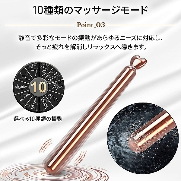 携帯に便利な手のひらサイズのスタイリッシュなマッサージャーが登場!10種の振動パターンでご自身のライフスタイルに合わせて使い分け。ハート型のキャップがとても可愛く印象的。健康とリラクゼーションを目的としたフェムケア用品となり女性でも安心してご利用いただけます。※充電の際は、ハート部分(キャップ)を少しだけ反時計回りに回し引っ張ると、充電の差込口があります。●カラー:シルバー