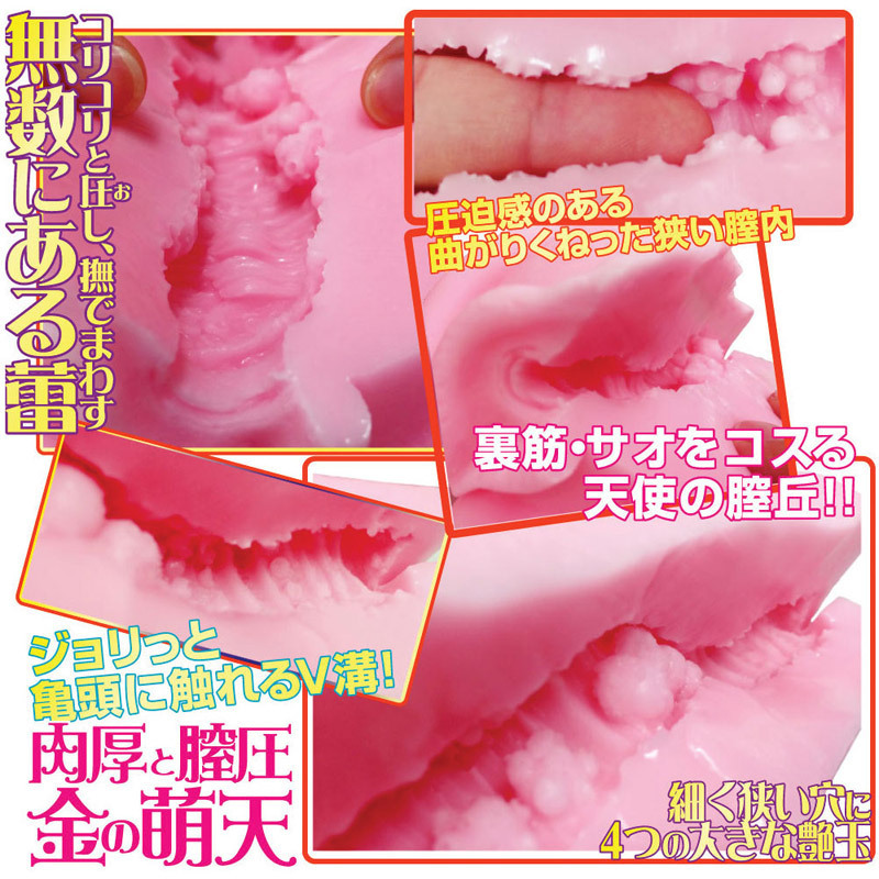 ホンモノを超える締まり具合!20代のぐちょぐちょ恥肉オナホール「金の萌天」非貫通型。ハリのあるボリューム満点の肉厚ボディには、バンジータッチ素材を採用。曲がりくねった膣道にヒダと無数のツブを配置!自慢の膣圧で亀頭から裏筋まで撫でまわしながら、ホンモノさながらの満足刺激をもたらします。細部までこだわって最高の挿入感を再現したオナホールです。