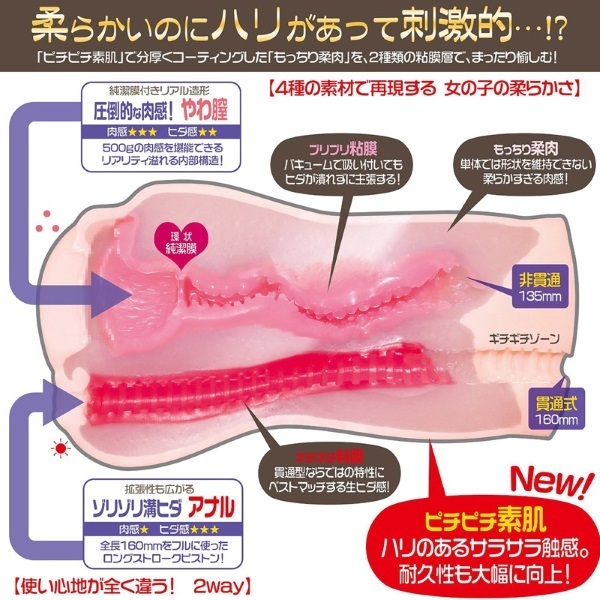 4種の素材で贅沢にイこう!快感も2倍堪能できる両穴仕様のオナホール。●ヴァギナとアナルの二穴タイプ●クワトロ=4種類もの素材を使用●外側:弾ける素肌を再現したハリ感●内側:柔らかすぎる?モッチリ肉感●膣側:プリプリやわやわな粘膜層●アナル側:キツ系ねっちり粘膜層●ヴァギナ(非貫通)→膜付き・うねる膣道・ぷっくりヒダ●アナル(貫通)→ジョリッと溝ヒダ・ストレート構造。単体では維持できないほどムニョーンと柔らかな素材をハリのある素材でコーティング!肉厚ボリュームで女性の柔ボディを再現した二穴オナホ。4つの感触による快感コラボレーションにハマりすぎ注意です。