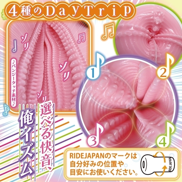 刻むよ!ゾクゾクする刺激奏。超ゾリ感 無限快路、4つの快音で刻む感覚の旅。角度を変えるたびに4つの違うBEATが息づく。ゾリ特化で構成され、刺激を彩る4種DayTrip。ホールボディのRIDE JAPANマークを目安にして自分のお好みポイントを見つけてください。選べる快音俺イズムで絶頂の旋律!